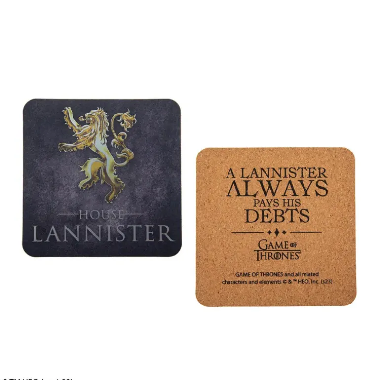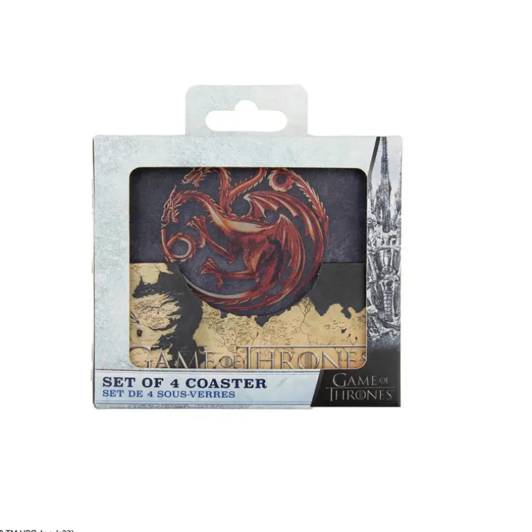 El set de posavasos Casas de Poniente Juego de Tronos es una verdadera joya para los aficionados a esta popular serie de televisión. Con un diseño fiel a las casas más emblemáticas de la saga, este set de 4 posavasos es una pieza imprescindible para cualquier fan de Juego de Tronos.