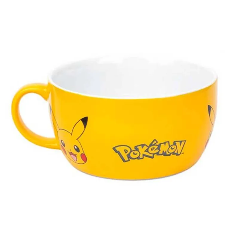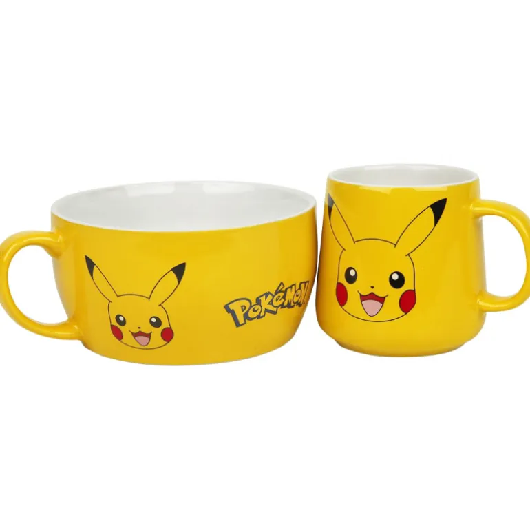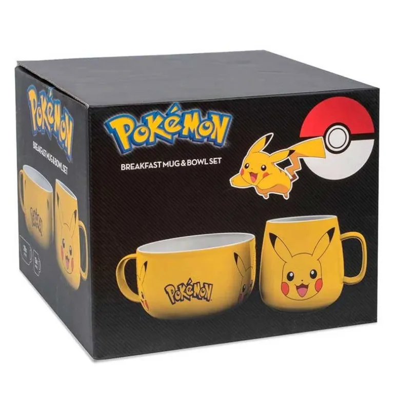 Un set compuesto por una taza perfecta para el café, con 380 ml de capacidad y un bol para lo que tú quieras, porque tiene 800 ml de capacidad. Ambas cuentan con un diseño espectacular, en ese color amarillo tan típico del que probablemente es el pokémon más icónico y adorable de la franquicia, nuestro querido Pikachu, cuyo rostro siempre repleto de felicidad aparece tanto la taza como en el bol.
