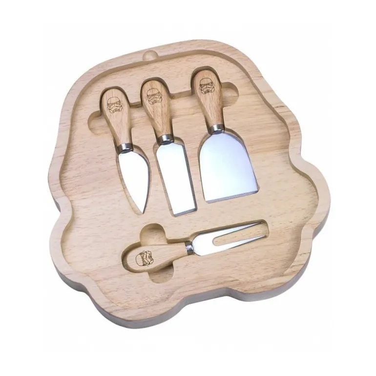 Es un set con licencia oficial Disney – Star Wars fabricado por Shepperton Desingn Studios UK y con una calidad en materiales y acabados realmente espectacular. Incluye la tabla y los cuatro accesorios en acero inoxidable con el mango también en madera serigrafiada con el casco de los Stormtrooper.