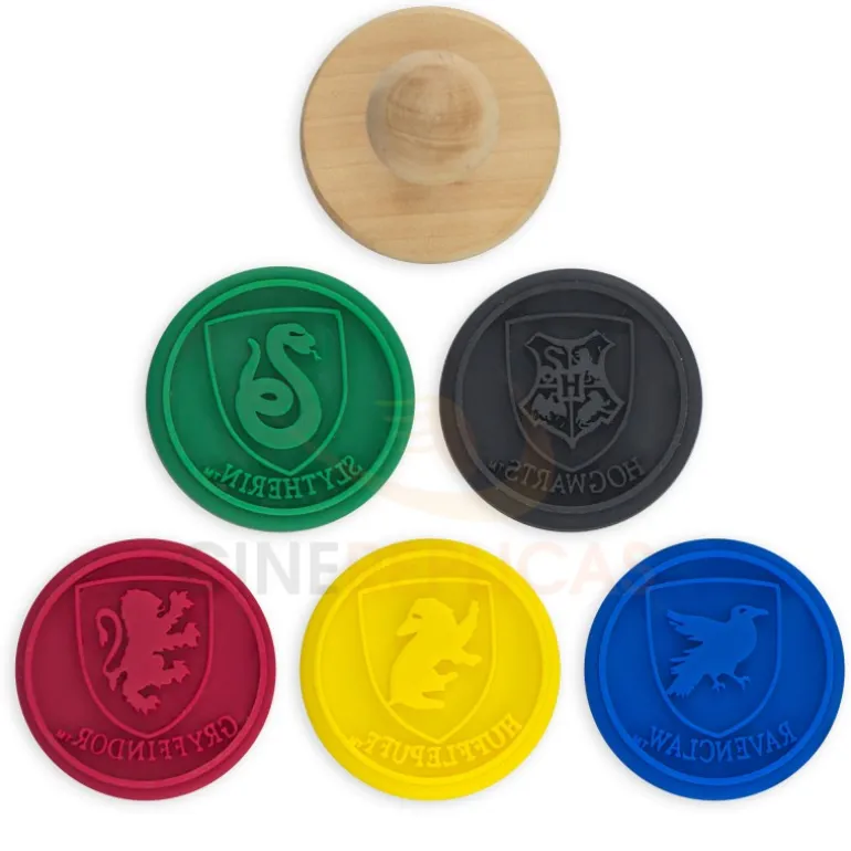 Sello para dar forma a tus galletas con el que podrás combinar todos los escudos de las casas del colegio de magia y hechicería Hogwarts, más el propio del colegio.
