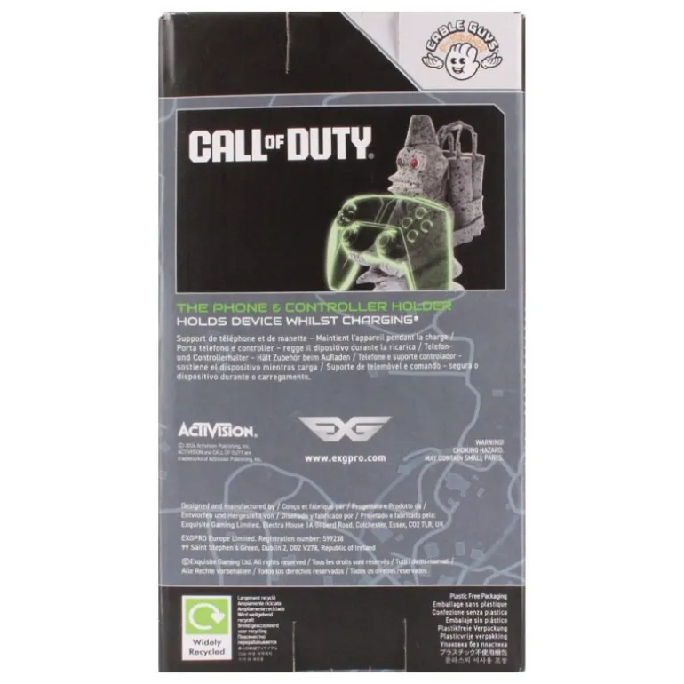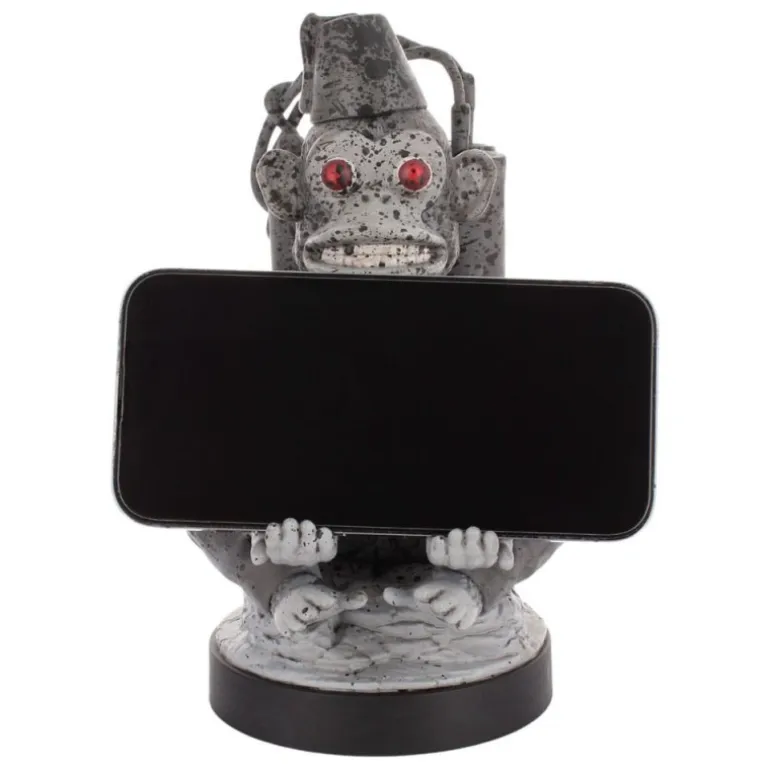 Descubre el soporte Cably Guys Monkey Bomb, inspirado en el famoso videojuego Call of Duty. Con un diseño único, este soporte de 20 cm presenta un mono detallado en tonos grises y negros, con ojos rojos que destacan por su intensidad. Ideal para sostener y cargar mandos como el DualShock 4 y el Xbox One Wireless Controller, y también compatible con teléfonos móviles. Es un producto con licencia oficial de Exquisite Gaming, garantizando calidad y autenticidad. Perfecto para añadir un toque de originalidad a tu colección o como un regalo especial para los fans del juego.