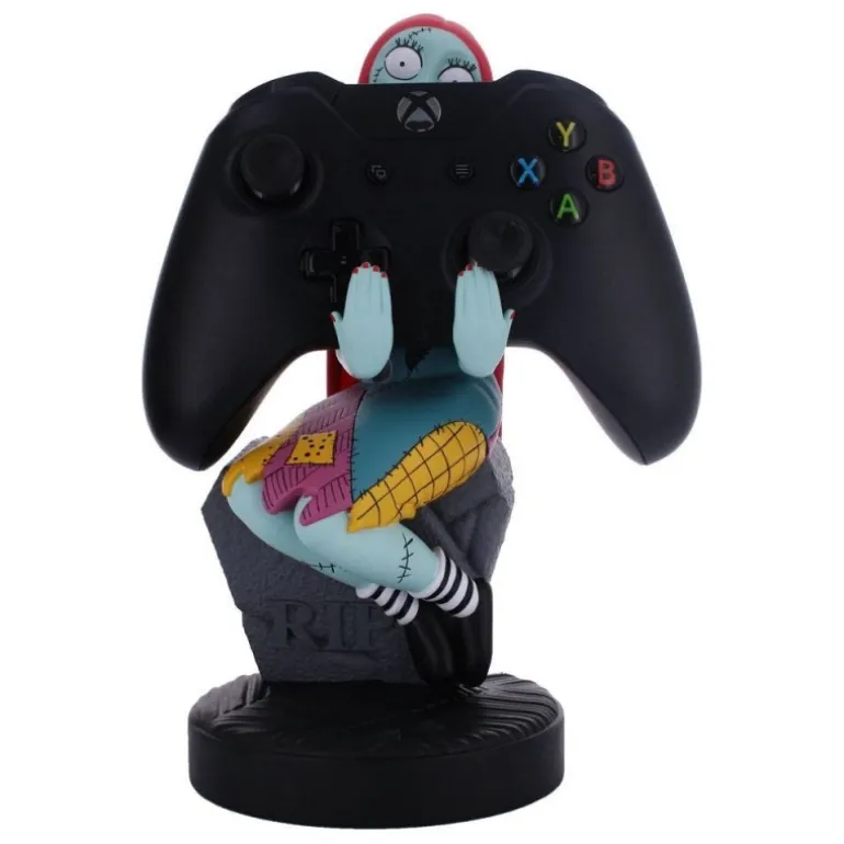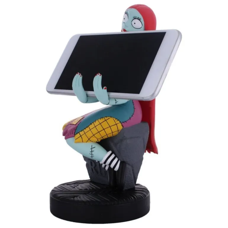 Descubre el encanto del Soporte Cably Guys Sally de Pesadilla Antes de Navidad. Este soporte de 20 cm de alto, fabricado por Exquisite Gaming, es una pieza imprescindible para los fans de la película. Con un diseño detallado, Sally aparece sentada sobre una tumba, con su característico cabello rojo y su vestido de retales multicolor. Ideal para sostener y cargar mandos de videoconsolas como el DualShock 4 y Xbox One Wireless Controller, así como teléfonos móviles.