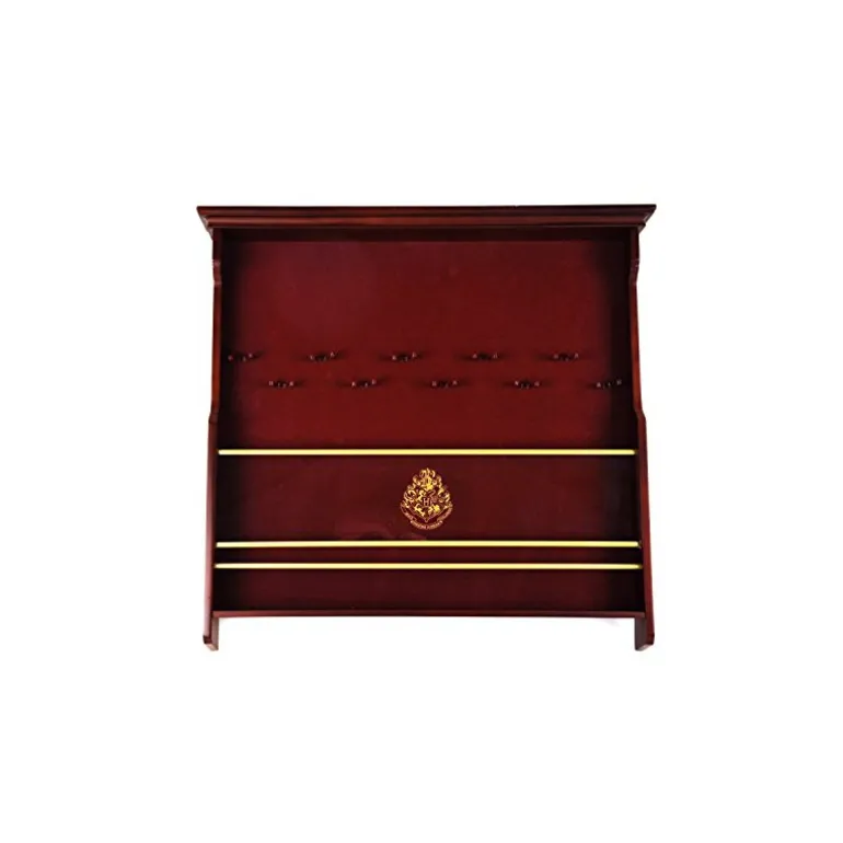 ¿Qué mejor manera de exponer tu colección de varitas que en un soporte especialmente diseñado para ellas? Tiene sitio para poner hasta 10 varitas mágicas de tus magos y brujas favoritos (no incluidas) y poder colgarlo en la pared para tenerlo siempre a la vista. Es de madera y mide 45x35cm, tiene unos ganchos en la pared posterior para que se mantenga estable cada varita sin tocar ninguna y que se puedan apreciar todos los detalles de cada una.