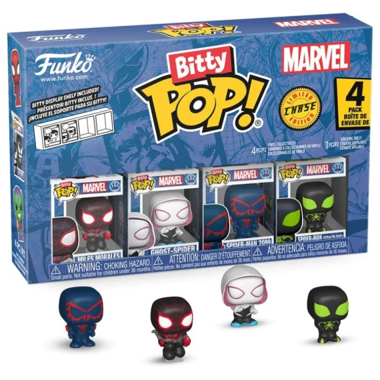 Descubre el emocionante Pack de 4 Figuras Bitty POP! de la serie 2 de Funko, protagonizado por tus héroes arácnidos favoritos de Marvel. Este conjunto incluye a Miles Morales, Ghost-Spider, Spider-Man 2099 y una figura Chase especial. Cada figura de vinilo, detalladamente diseñada, mide aproximadamente 2 cm, capturando la esencia de estos icónicos personajes en un formato compacto y coleccionable.