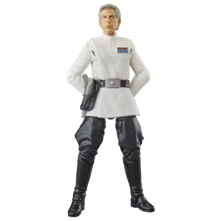 La figura del Director Orson Krennic de la serie Star Wars: Andor está diseñada para capturar con precisión la esencia del personaje. Con una altura de 15 cm, esta figura perteneciente a la línea Black Series de Hasbro es un verdadero tributo a la saga galáctica. Krennic viste su característico uniforme blanco imperial junto a su capa, perfectamente detallados en textura y color.
