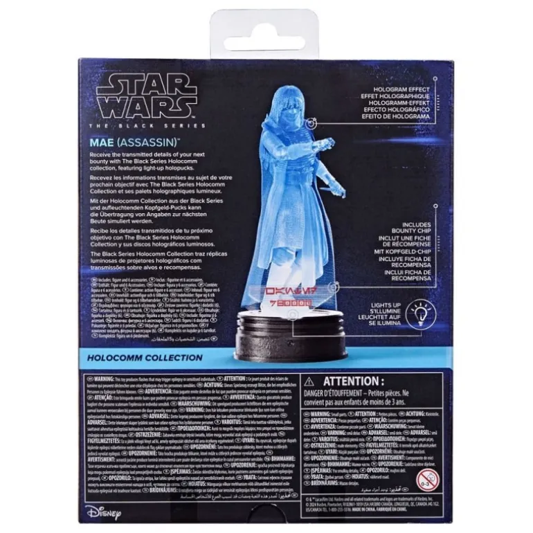 Descubre la impresionante figura holográfica de Mae (Assassin) de la colección Star Wars Black Series Holocomm. Este artículo, fabricado por Hasbro, presenta una escultura detallada de 15 cm inspirada en el vasto universo de Star Wars. La figura viene en un vibrante color azul translucido, simulando perfectamente un holograma, y destaca por sus múltiples puntos de articulación que permiten adoptar diversas poses para exhibición.