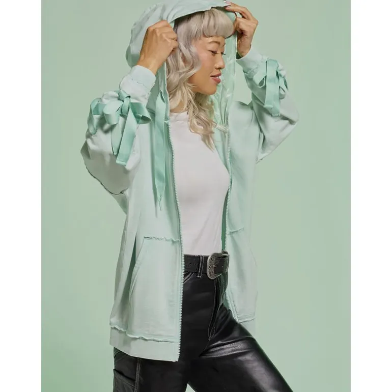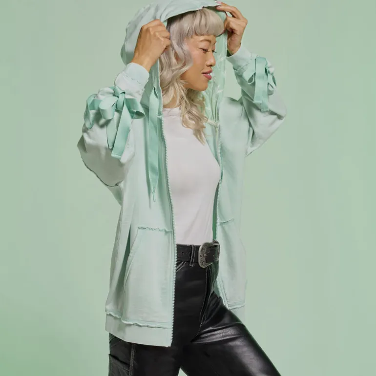 Confeccionada con materiales de alta calidad, ofrece comodidad y durabilidad. Los lazos decorativos en las mangas añaden un toque sofisticado. La capucha ajustable proporciona un extra de calidez, perfecto para los días más frescos.