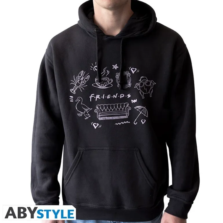 Esta sudadera con capucha de color negro de FRIENDS, fabricada por ABYstyle, es ideal para los verdaderos fans de la icónica serie de televisión. Confeccionada en un tejido suave y cálido, 80%algodón de 290gr, esta prenda ofrece máxima comodidad para el día a día.