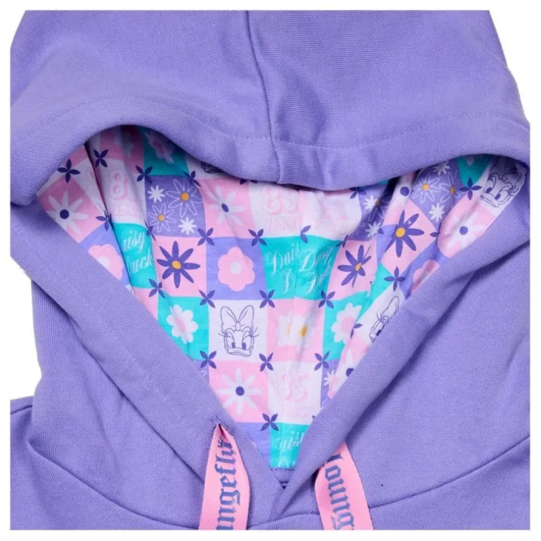 La Sudadera Disney by Loungefly Daisy 85th Anniversary es una pieza única que combina estilo y comodidad con un toque nostálgico. Esta sudadera unisex de color morado vibrante destaca por sus detalles encantadores que celebran el 85 aniversario de Daisy. Fabricada en tejido de rizo francés, ofrece una sensación suave y cálida. La capucha incluye un forro de punto colorido con motivos de Daisy, aportando un detalle especial al diseño.