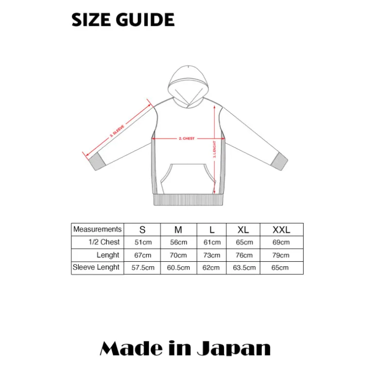 El modelo de la sudadera lleva una talla L y mide 1,80 metros de altura, para que te hagas un poco la idea de cómo quedan. Esta sudadera es fabricada por la reconocida marca portuguesa Made in Japan, que se destaca por su dedicación a la calidad y la originalidad en sus diseños.