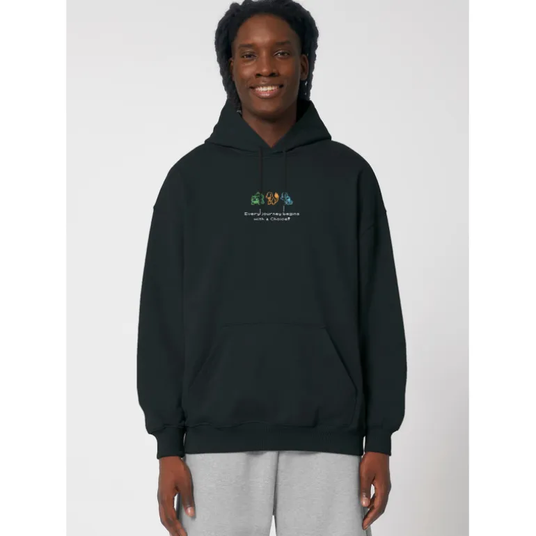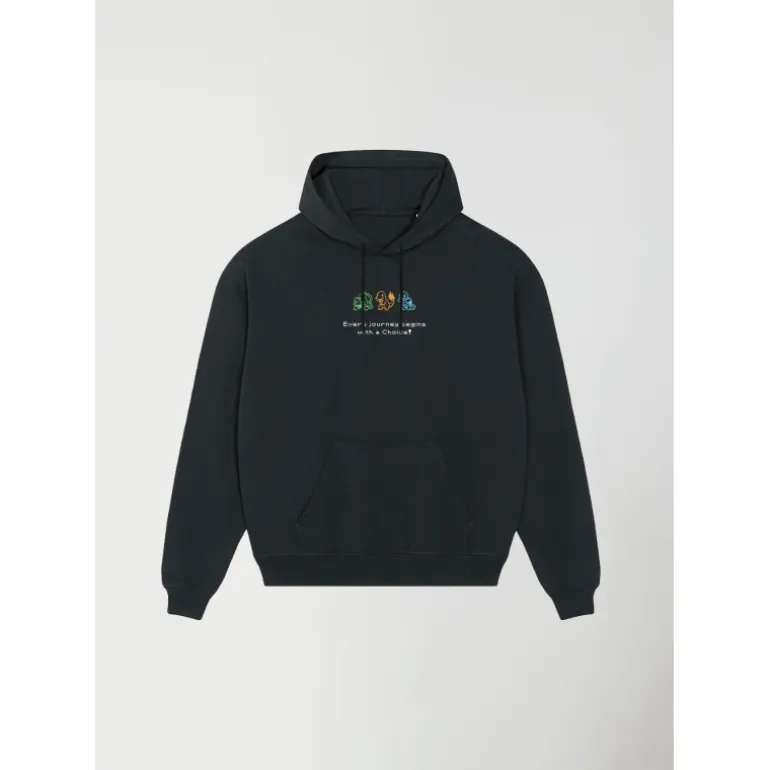 La Sudadera Pokemon The Choice Made In Japan es una prenda de alta calidad y diseño exclusivo, fabricada en un 80% de algodón de 330 gramos en color negro. Esta sudadera es un tributo a la famosa franquicia de Pokemon, con un elegante diseño que muestra a los tres pokemon iniciales de la primera generación: Squirtle, Charmander y Bulbasaur.