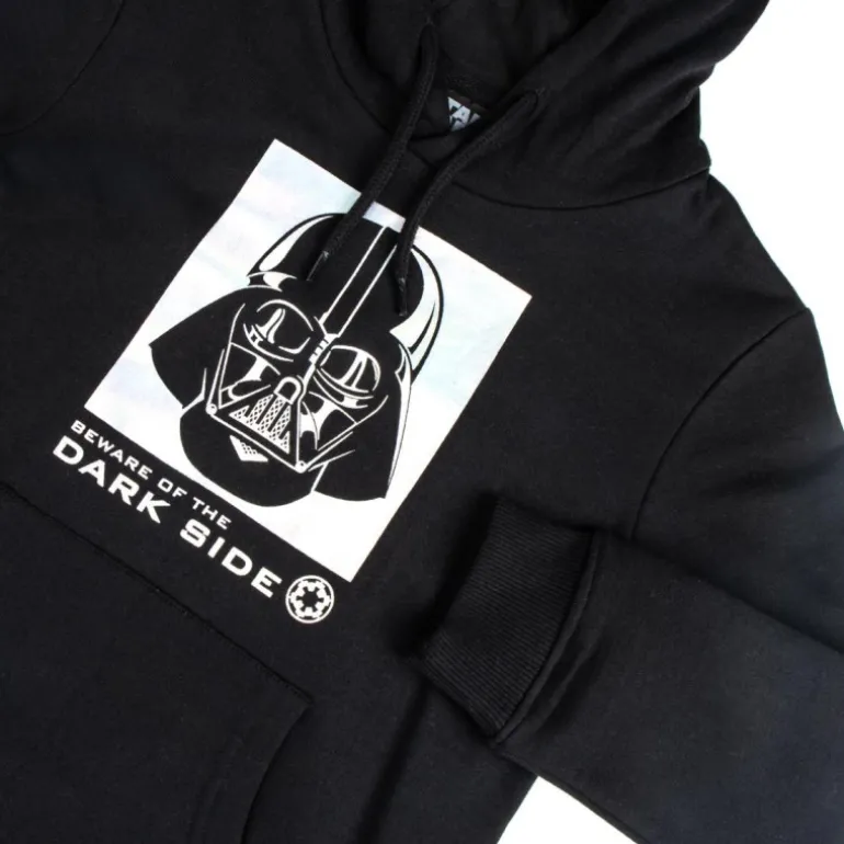 Descubre la sudadera perfecta para los jóvenes seguidores de la saga Star Wars. Esta sudadera negra, diseñada especialmente para niños de 8 a 14 años, presenta un llamativo estampado del icónico Darth Vader con la frase «Beware of the Dark Side».