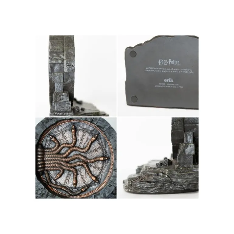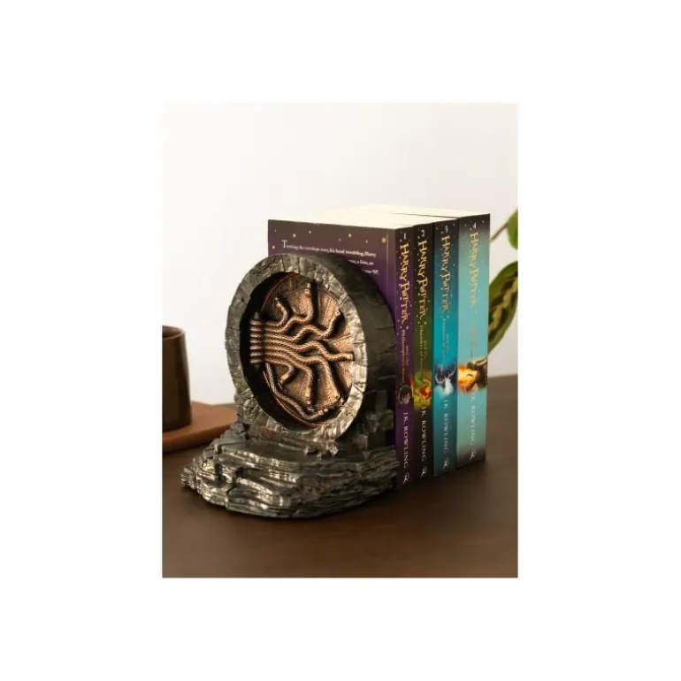 Mira que maravilla de sujetalibros con la forma de la mítica Cámara de los Secretos de la saga de libros y películas Harry Potter.