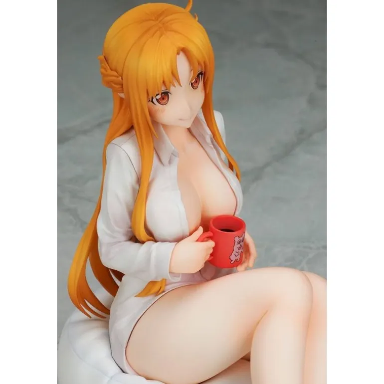La figura presenta a Asuna sentada sobre un cojín blanco, sosteniendo una taza roja decorada, añadiendo un toque personal y relajante a su expresión. Con dimensiones de 16 x 21,4 x 24,7 cm y un peso de 642 gramos, esta estatua es un verdadero testimonio de la dedicación al detalle de Hobby Stock.