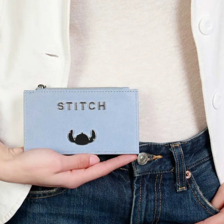 El tarjetero slim de Disney Lilo y Stitch es un accesorio elegante y funcional, diseñado para los verdaderos admiradores de Stitch. Con un llamativo color azul, este tarjetero presenta el nombre ‘Stitch’ en una placa metálica plateada en la parte frontal, acompañado de un diseño del personaje. Hecho con materiales de alta calidad, ofrece cinco compartimentos para tarjetas y un compartimento adicional con cremallera para monedas, manteniendo todo organizado y seguro. Sus dimensiones compactas de 0,5 x 14 x 8 cm hacen que sea fácil de llevar en cualquier bolso o bolsillo. Ideal como un regalo original para los fans de Disney.