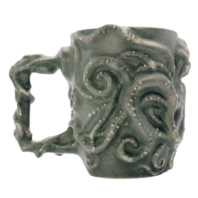 Se trata de una taza muy escultural, porque en realidad tiene la forma de esta impresionante criatura con aspecto de calamar gigante, que emerge del fondo del mar para causar un auténtico terror en cualquiera que se lo encuentre. Fíjate en la enorme cantidad de detalles que tiene esta taza, tanto en la forma como el minucioso trabajo de pintura, que le dan un montón de realismo.