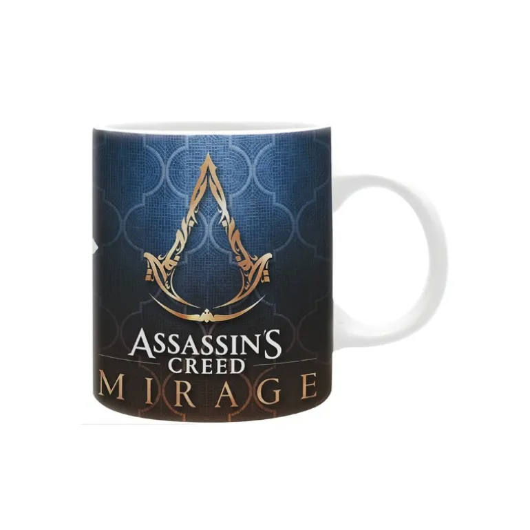 Sumérgete en el universo de Assassin’s Creed con esta impresionante taza de 320ml diseñada por ABYstyle. La taza, con licencia oficial de Assassin’s Creed, presenta un diseño detallado con el emblemático logo dorado de la saga y la inscripción «Mirage» en un elegante fondo azul oscuro con un patrón geométrico sutil que captura la esencia del juego.