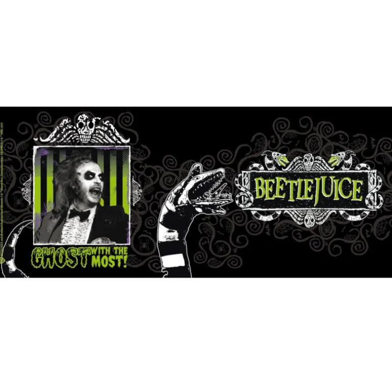 Basada en la película «Beetlejuice» de 1988, la taza presenta una representación visual vibrante de Bitelchús. Esta obra de arte encapsula la esencia de la película, permitiendo a los aficionados revivir sus momentos favoritos cada vez que utilicen este artículo.