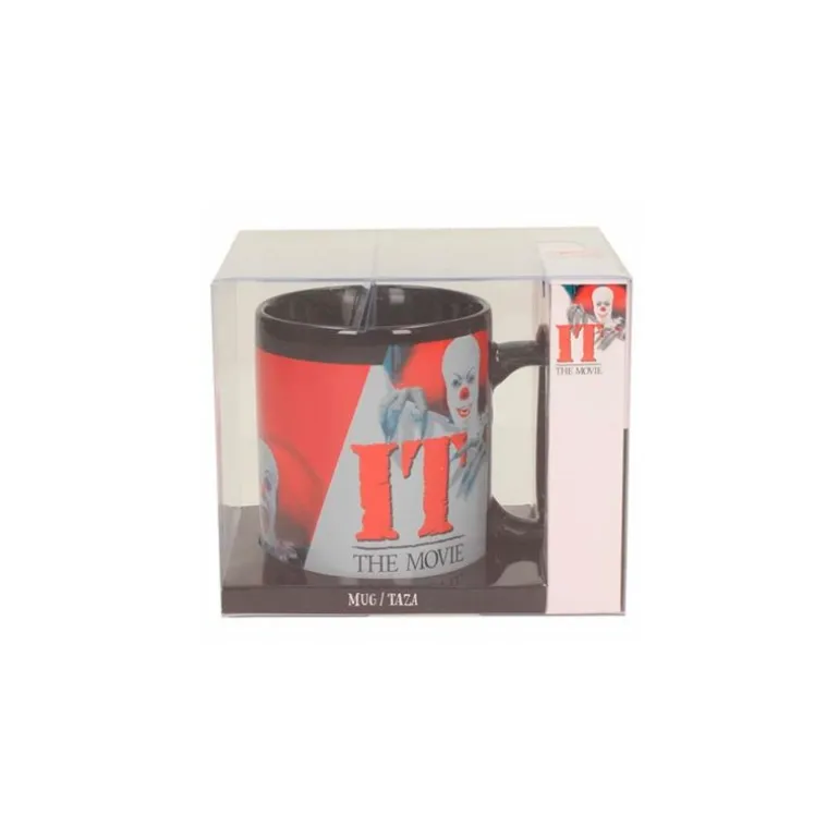 Descubre la taza de cerámica oficial de IT The Movie, protagonizada por el terrorífico Pennywise. Esta taza, fabricada por SD Toys Europe S.L., ofrece un diseño envolvente que destaca el icónico logo de la película, combinado con imágenes del famoso payaso. Ideal para amantes del terror clásico y coleccionistas, es perfecta para disfrutar de tus bebidas favoritas.