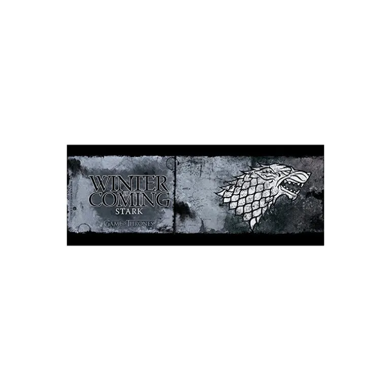 Es una elegante taza oficial de la serie con un diseño genial que está protagonizado por el escudo de la casa Stark de Juego de Tronos, con ese lobo huargo en tonos grisaceos que tan popular se ha hecho, en una serigrafía con una enorme cantidad de detalles. Es una taza que además podemos ver el logotipo oficial de Juego de Tronos, y la frase Winter is Coming.