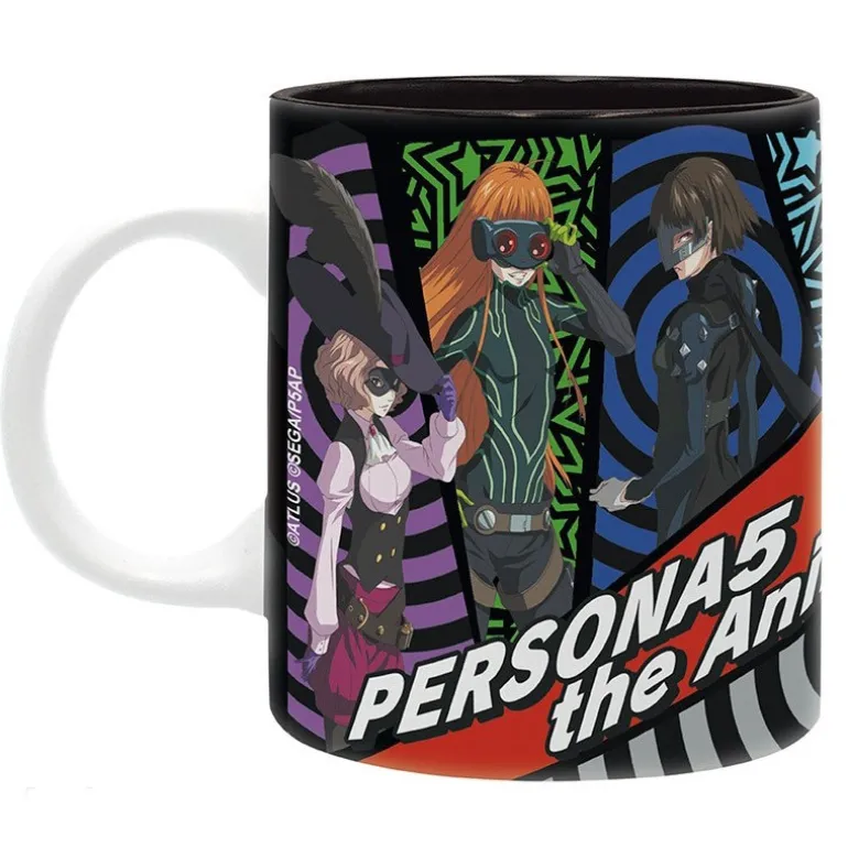 Una magnífica taza de cerámica de 320 ml de capacidad y resistente a lavavajillas y microondas, basada en el videojuego de rol, Persona 5, en este caso en Persona 5 the animation, la serie de anime. Una maravilla tanto por la calidad del material como los acabados y colorido de sus dibujos.