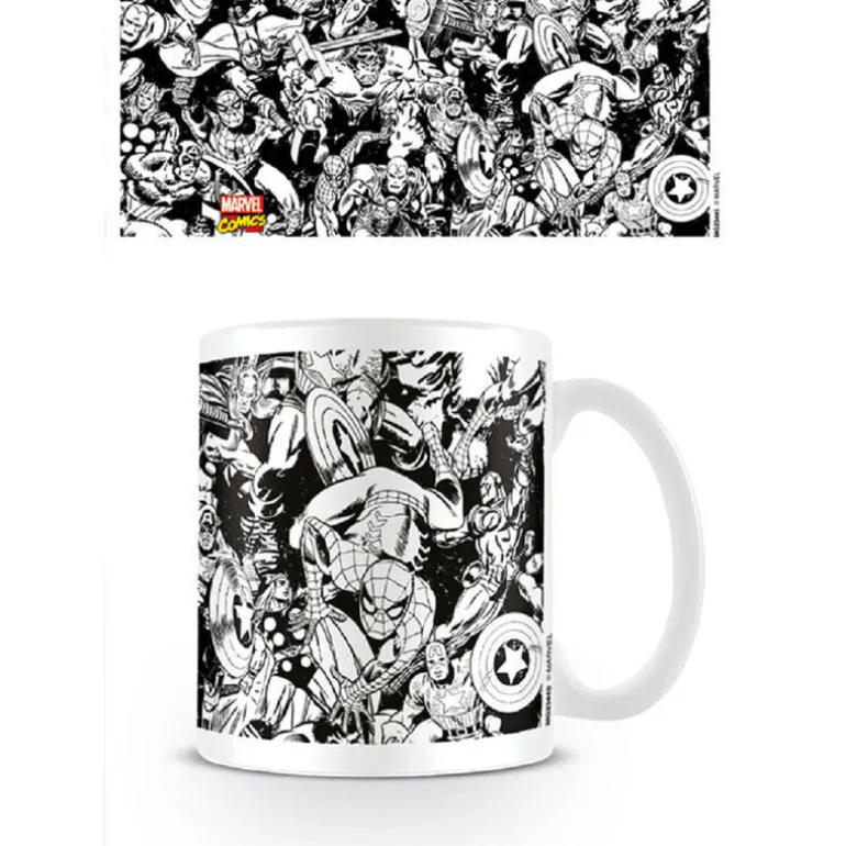Con una capacidad de 315 ml, esta taza es perfecta para disfrutar de tus bebidas favoritas mientras te sumerges en las aventuras de tus personajes Marvel preferidos en blanco y negro. Además, su diseño elegante y original convierte esta pieza en un objeto de colección que no puede faltar en la colección de los fanáticos más fieles.