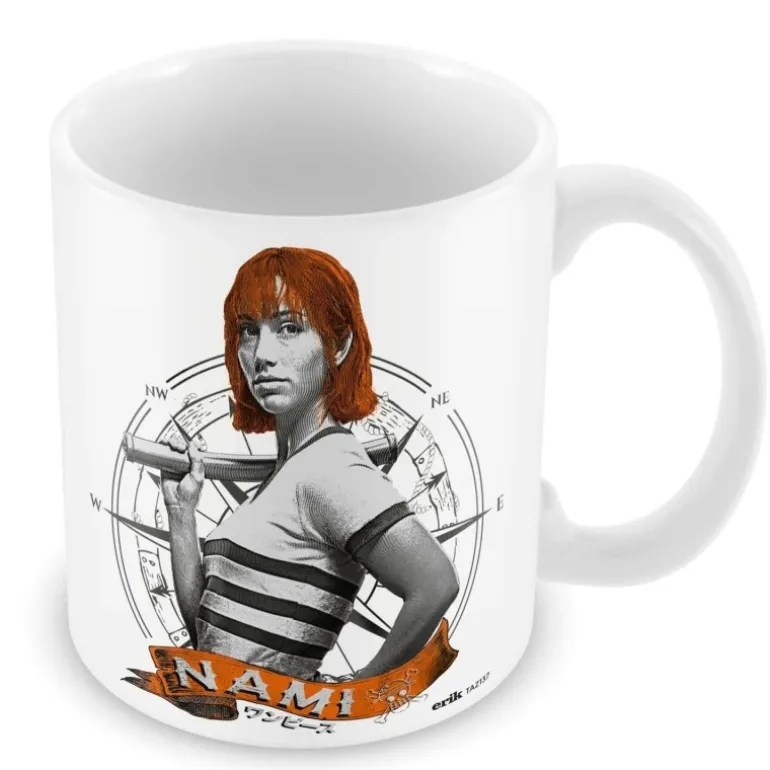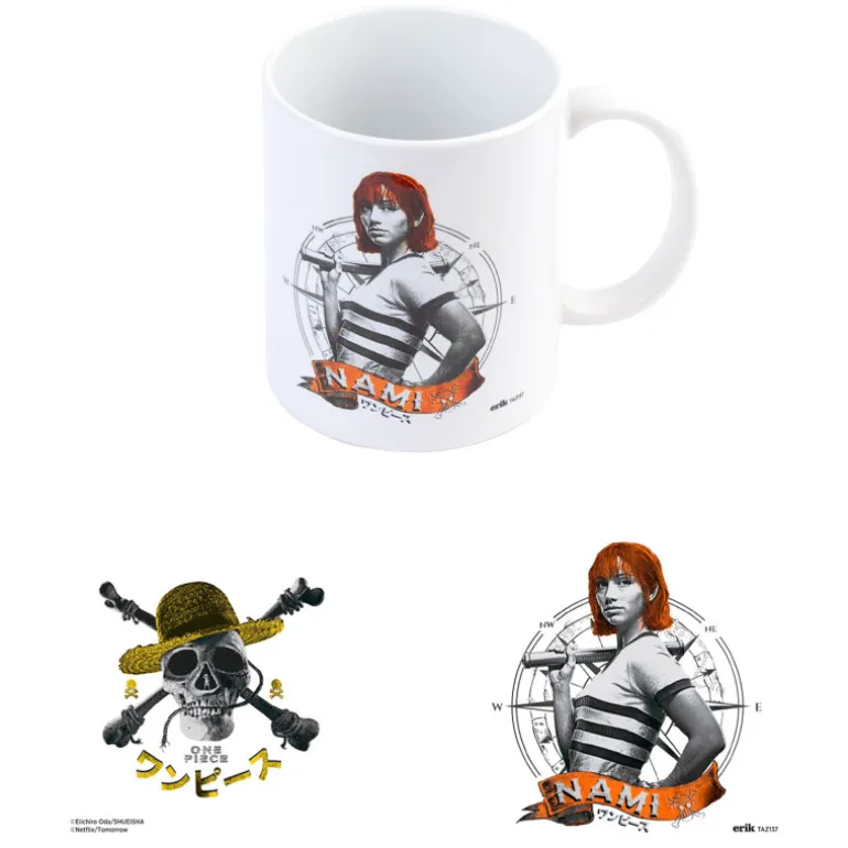 Es una taza oficial licenciada por la productora de la original y divertida serie de anime One Piece, protagonizada por Nami y el logo de la calavera.