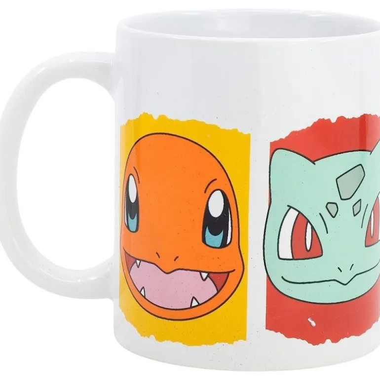 Se trata de una taza con un fantástico diseño, protagonizado por los Pokemons iniciales de la primera generación del videojuego de Nintendo, Pokemon. Aparecen los rostros de Bulbasaur, Charmander, Squirtle y Pikachu