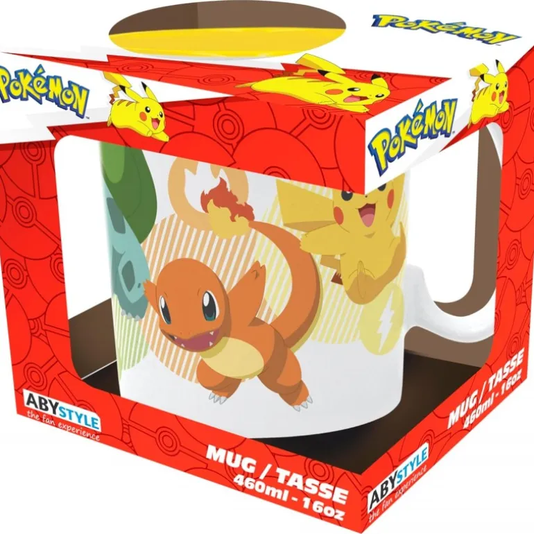 Descubre la Taza Pokémon de 460 ml con un diseño vibrante que presenta a Pikachu y los Pokémon iniciales. Fabricada por ABYstyle, esta taza con licencia oficial de Pokémon es perfecta para los amantes de la saga. Diseñada en un fondo blanco con detalles en amarillo brillante en el interior, muestra a Pikachu, Bulbasaur, Charmander y Squirtle en una alegre estampa que encantará a cualquier fanático de la serie.
