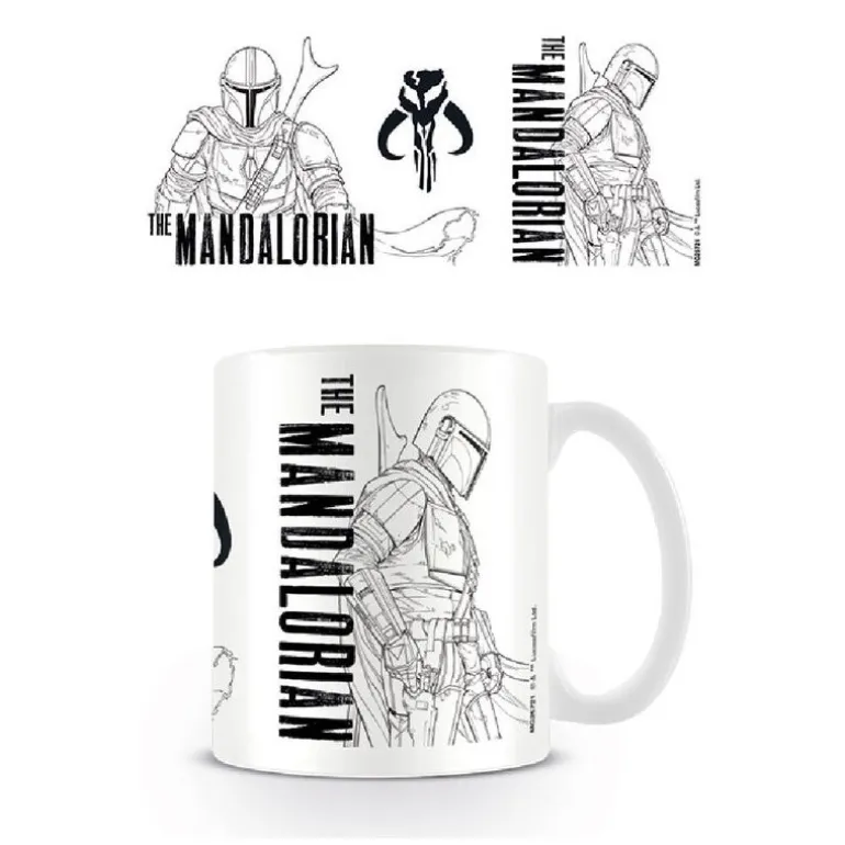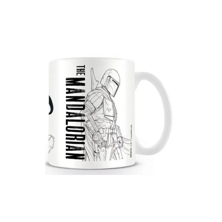 Se trata de una taza de gran calidad, tanto materiales y acabados, como en la calidad de su serigrafia. Pero si por algo destaca esta taza es por su fantástico diseño, con un dibujo de el mandaloriano en blanco y negro.