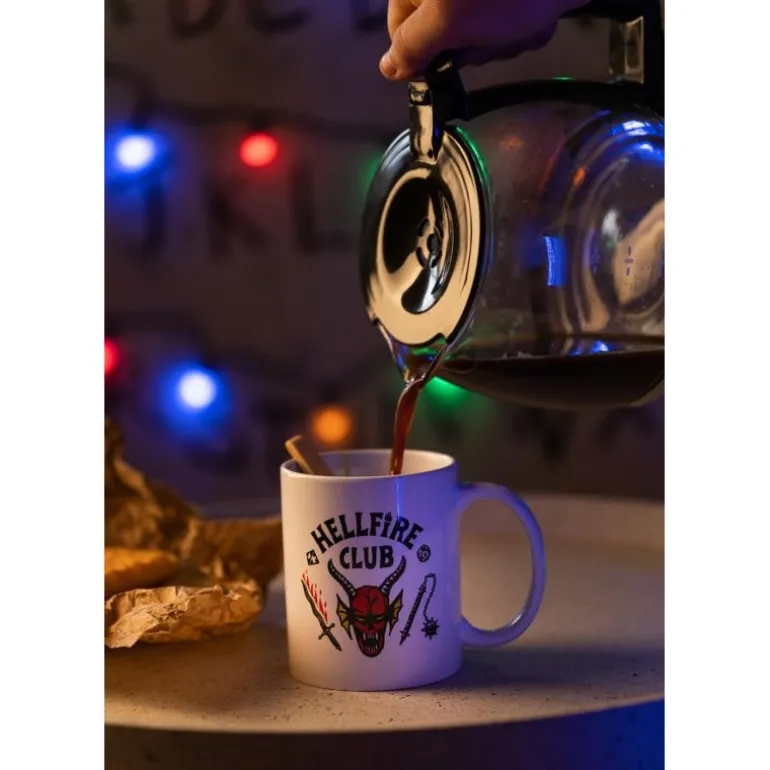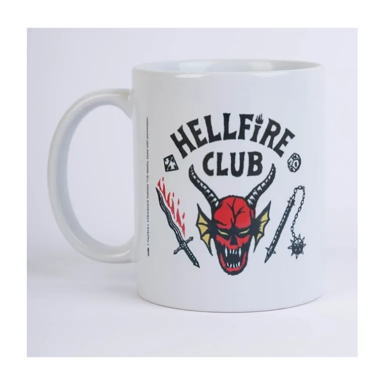Una fantástica taza de cerámica de 350 ml capacidad, apta para microondas y lavavajillas, y con un diseño muy especial, basado en el Hellfire Club, el club de rol que conocimos en la cuarta temporada de Stranger Things.