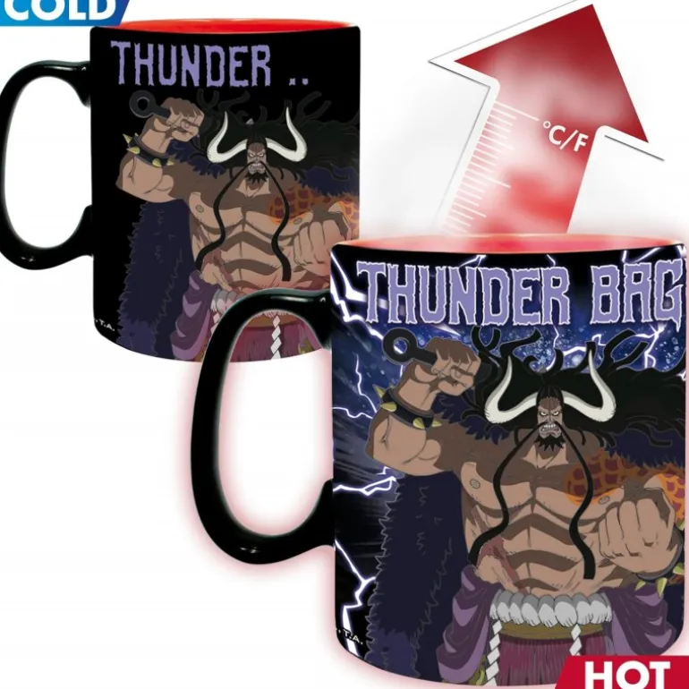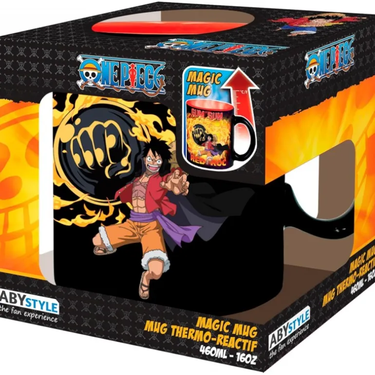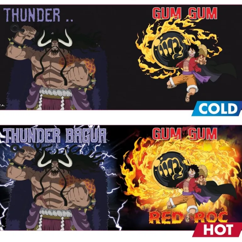 Para los seguidores de One Piece, esta taza térmica de 460 ml es un imprescindible para tu colección. Fabricada por ABYstyle y con licencia oficial, esta taza destaca por su capacidad de cambiar de imagen con el calor. Al estar fría, presenta un fondo negro impresionante con la frase «GUM GUM», acompañada de la figura de Luffy listo para el combate. Al agregar una bebida caliente, la taza revela un llamativo diseño de Luffy en acción, rodeado de intensas llamas, con el texto «RED ROC».