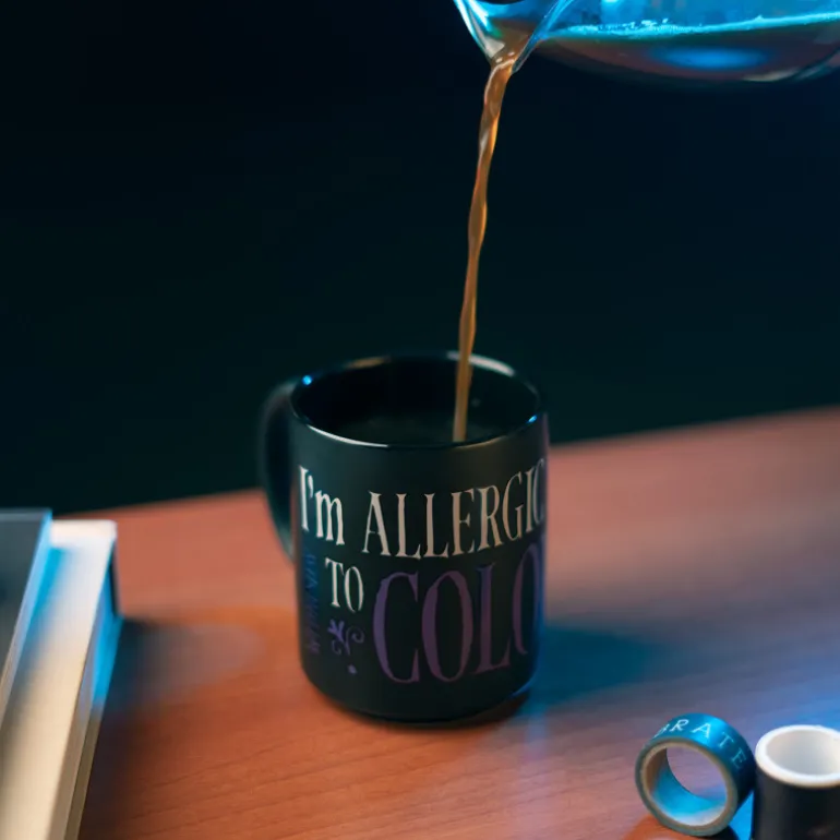 La taza «Wednesday – I’M Allergic To Color» es un producto de alta calidad con licencia oficial que satisfará las necesidades de los aficionados a Wednesday. Con una capacidad de 350 ml, esta taza de cerámica es apta para lavavajillas y viene acompañada de una caja protectora, lo que la hace ideal para regalar.