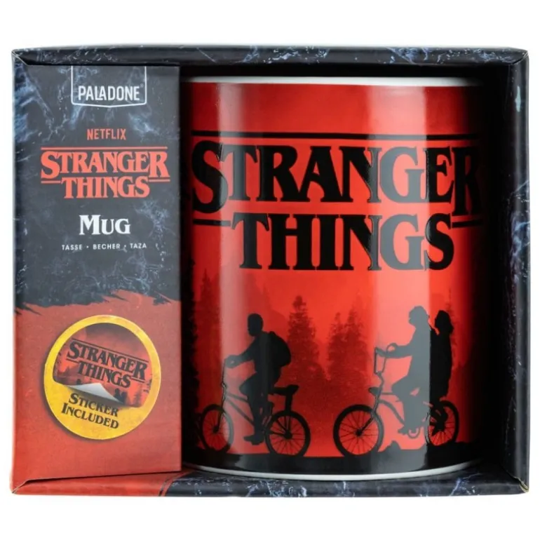 Descubre el universo paralelo de Hawkins con esta taza XL de Stranger Things. Con un diseño distintivo en rojo y negro, la taza presenta las icónicas siluetas de los niños en bicicleta, recreando una de las escenas más memorables de la serie. Fabricada por Paladone Products y con licencia oficial, asegura calidad y autenticidad en cada sorbo. Además, incluye una pegatina extra para personalizar tus accesorios. Perfecta tanto como regalo original como para darte un capricho.