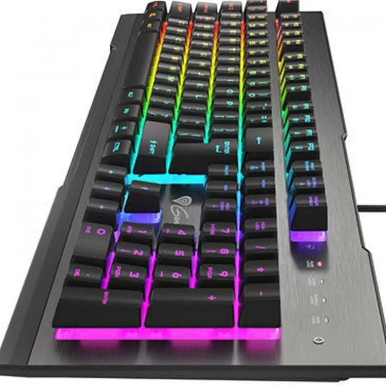 Fabricado en materiales de ABS sintéticos y metal, combina durabilidad con elegancia. Su acabado en negro y plata, junto con su retroiluminación LED RGB ajustable, proporciona un ambiente inmersivo y personalizable. Incluye teclas multimedia y de Windows, y una función de antifantasma para un rendimiento óptimo.