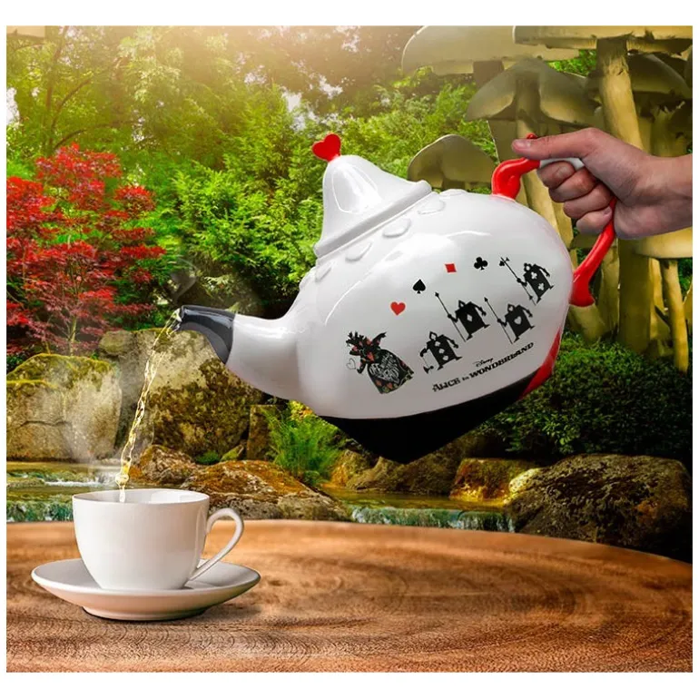 Un espectacular set de plato y tetera de Alicia en País de las Maravillas, fabricado en cerámica de la mejor calidad. Esta compuesto por una plato y tetera que además de por su fantástico diseño, destacan tanto por la calidad del material como los acabados y la pintura.