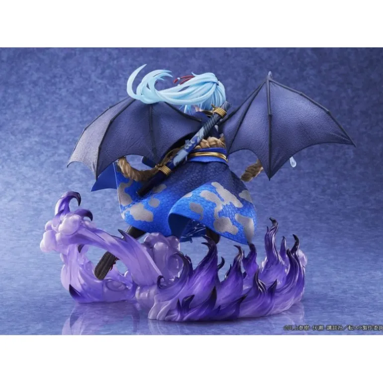 Descubre la figura coleccionable de That Time I Got Reincarnated as a Slime, representando a Rimuru Tempest en su forma más dinámica. Con un diseño exquisito, esta estatua de PVC a escala 1/7 mide aproximadamente 21 cm de altura y captura cada detalle del personaje con precisión. Rimuru está esculpido en una pose dinámica, rodeado de efectos que simulan fuego azul, y con detalles como alas negras y una túnica azul decorada con patrones dorados. La estatua se presenta en una caja con ventana, ideal para exhibir o para el deleite de los coleccionistas serios.