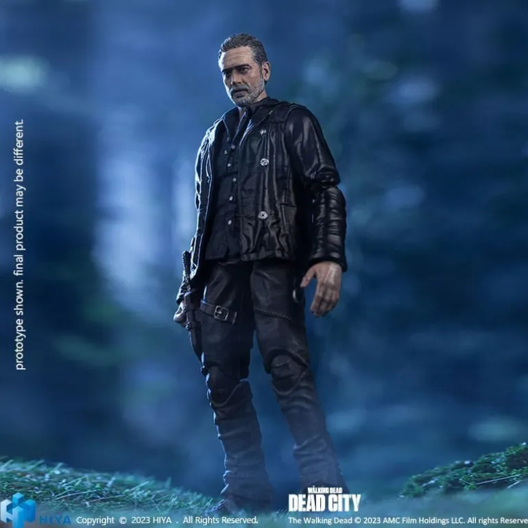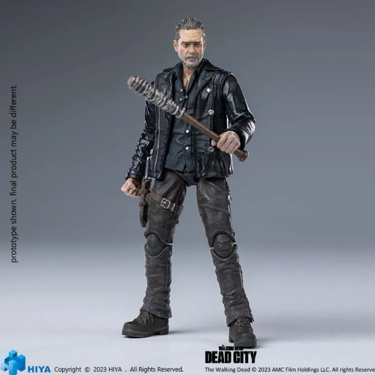 Esta impresionante figura articulada de Negan mide aproximadamente 11 cm y forma parte de la línea «Exquisite Mini». Fabricada por Hiya Toys, esta figura es perfecta para los fans de The Walking Dead. Detalladamente esculpida, muestra a Negan con su clásica chaqueta de cuero y su famosa arma. Incluye accesorios intercambiables y una base detallada que evoluciona con el tema apocalíptico de la serie. Un producto con licencia oficial ideal para coleccionistas o como un regalo único.