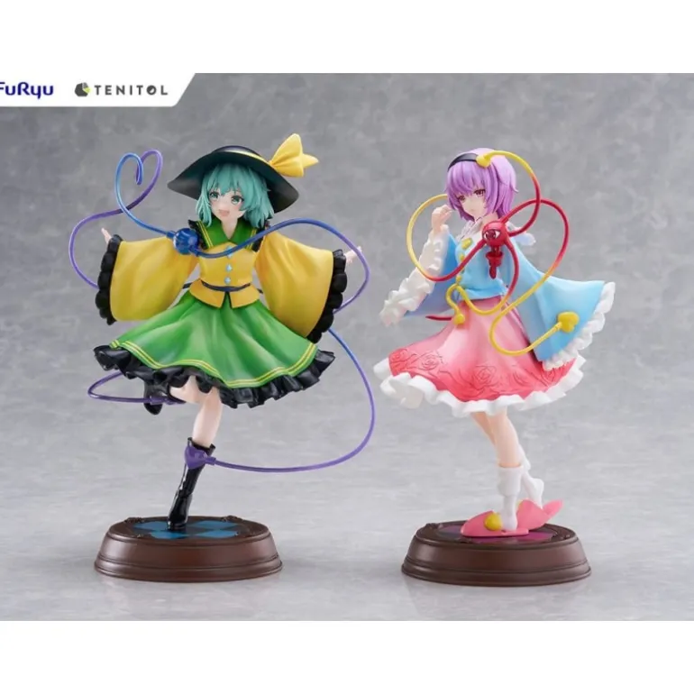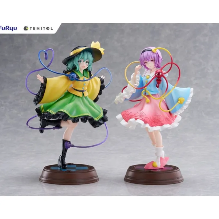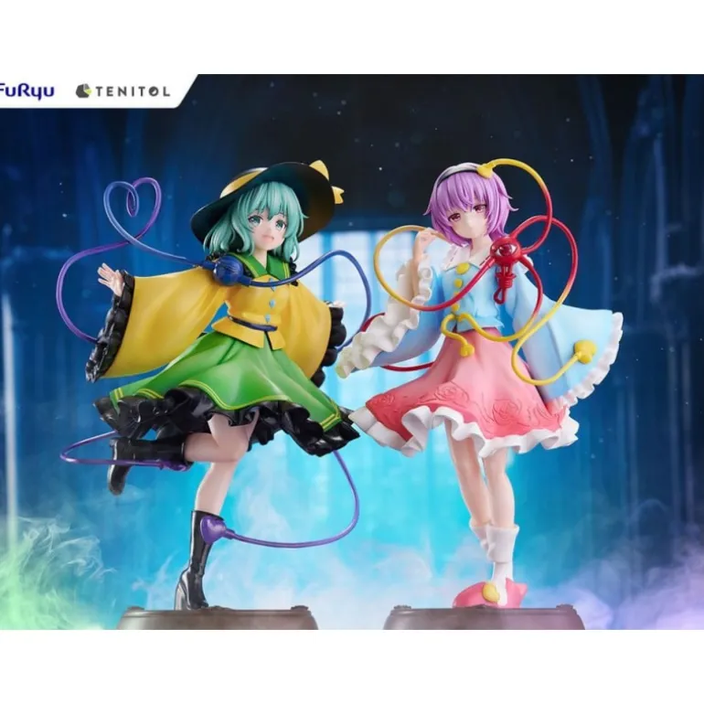 Descubre las impresionantes estatuas de PVC de Koishi Komeiji y Satori Komeiji del popular Touhou Project. Cada figura mide aproximadamente 22 cm, capturando la esencia de estos icónicos personajes con detalles meticulosos. La representación de Koishi presenta un vibrante vestido verde con detalles amarillos y un sombrero a juego, mientras que Satori luce un encantador atuendo rosado adornado con motivos florales. Sus posturas dinámicas y cableados coloridos otorgan una sensación de movimiento y vida a las figuras.