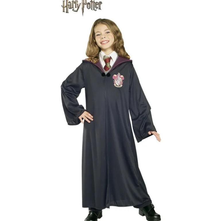 Te traemos ésta magnífica túnica infantil de Gryffindor, la casa de la cual forman parte Hermione, Harry y Ron en la saga de Harry Potter. Una túnica unisex en color negro con el cuello granate, un broche y el escudo de Gryffindor serigrafiado en el pecho.