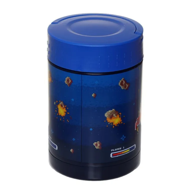 Una maravilla de tupper térmico con un diseño muy divertido, inspirado en el mundo del retrogaming, las consolas clásicas y esos juegos repletos de píxeles.