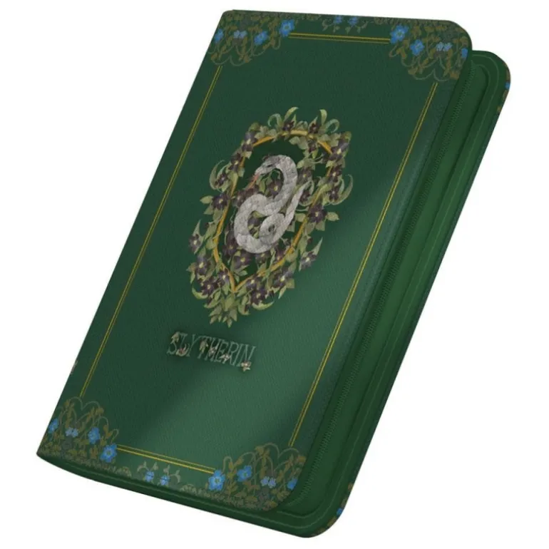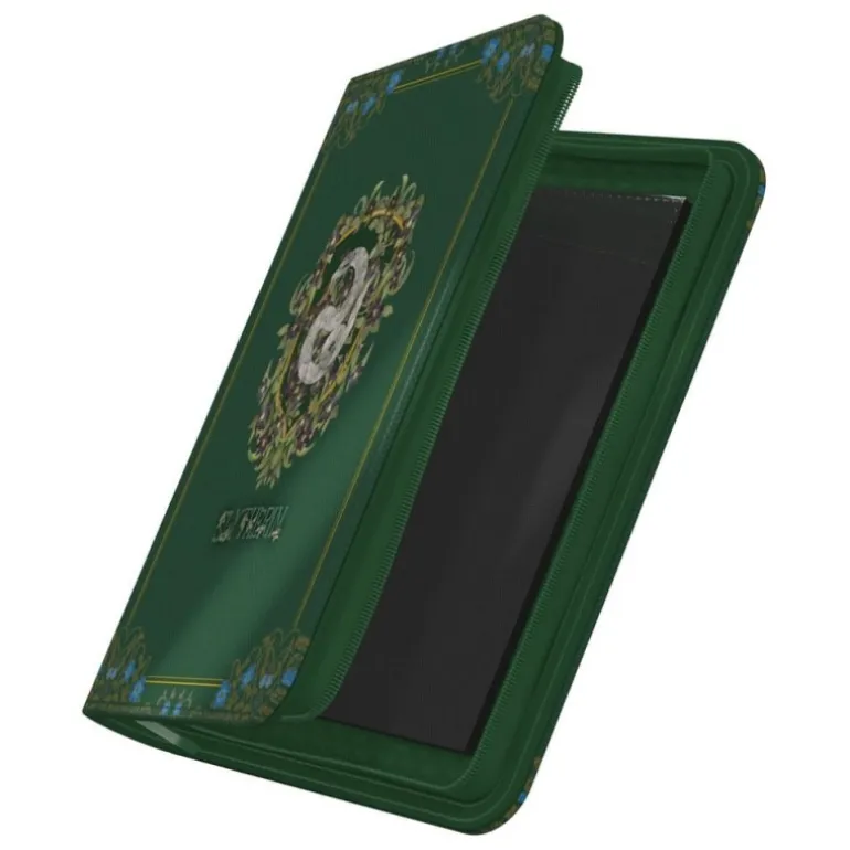 El Ultimate Guard Zipfolio 160 Xenoskin de Harry Potter es la solución ideal para los verdaderos fans de la saga que desean proteger sus cartas coleccionables. Este álbum especial de la casa Slytherin presenta un elegante diseño en verde con un emblema central detallado rodeado por un marco floral en dorado y azul. La cubierta está fabricada en resistente material Xenoskin y cuenta con un práctico cierre de cremallera, asegurando la máxima protección.