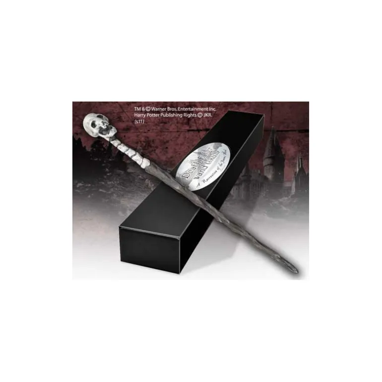 Aquí tenemos una maravillosa réplica 1:1 de la varita mágica de un Mortífago, un fiel seguidor del tenebrosos Voldemort, de la saga de libros y películas Harry Potter. Es exactamente igual a las que usan en las pelis salvo que ésta la han hecho con resina de alta calidad, la han pintado a mano con mucho cariño y viene en una caja especialmente diseñada para ella.