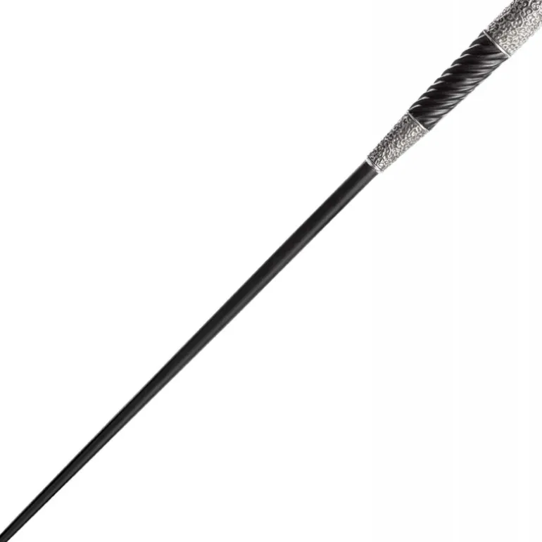El acabado de la varita es meticuloso, mezclando tonos oscuros y claros que le confieren un aire misterioso y sofisticado. Viene presentada en una caja de lujo, que incluye un lazo de seda negro para asegurarse de que se mantenga en perfecto estado. La caja no solo protege la varita, sino que también realza su presentación como un objeto de alta gama.