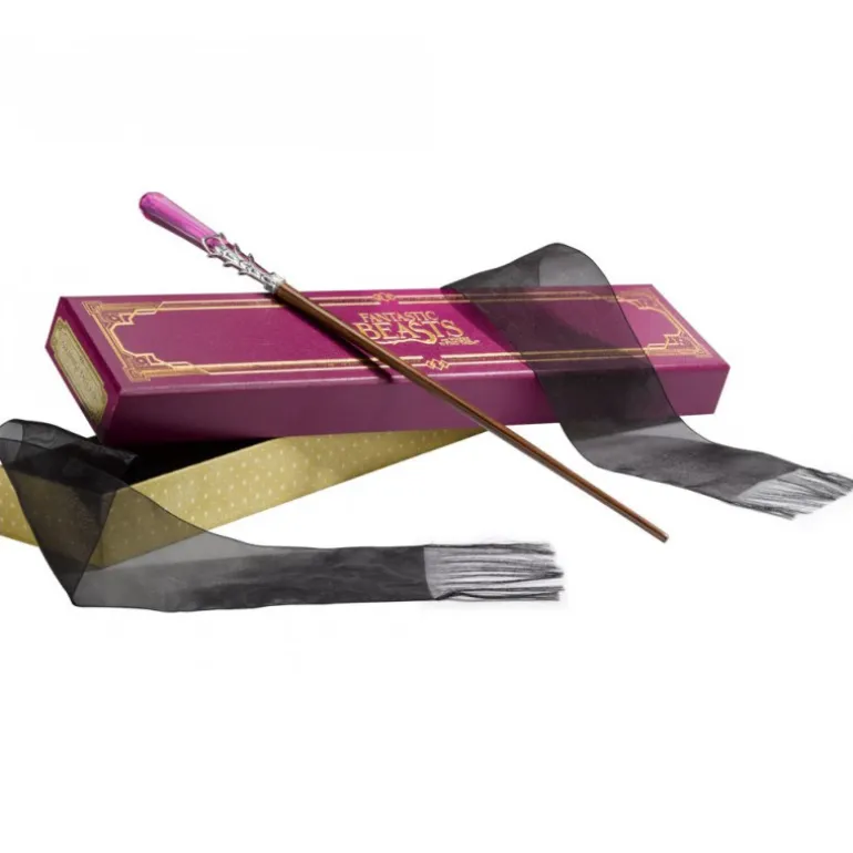 Réplica en resina y pintada a mano de la varita de Seraphina Picquery, uno de los personajes principales de la nueva aventura cinematográfica del universo Harry Potter, Animales Fantásticos y Dónde Encontrarlos. Viene con una réplica de la elegante caja que llevaría en la tienda Ollivander’s, forrada en terciopelo con dos bandas semitransparentes cubriéndola para que no se roce.