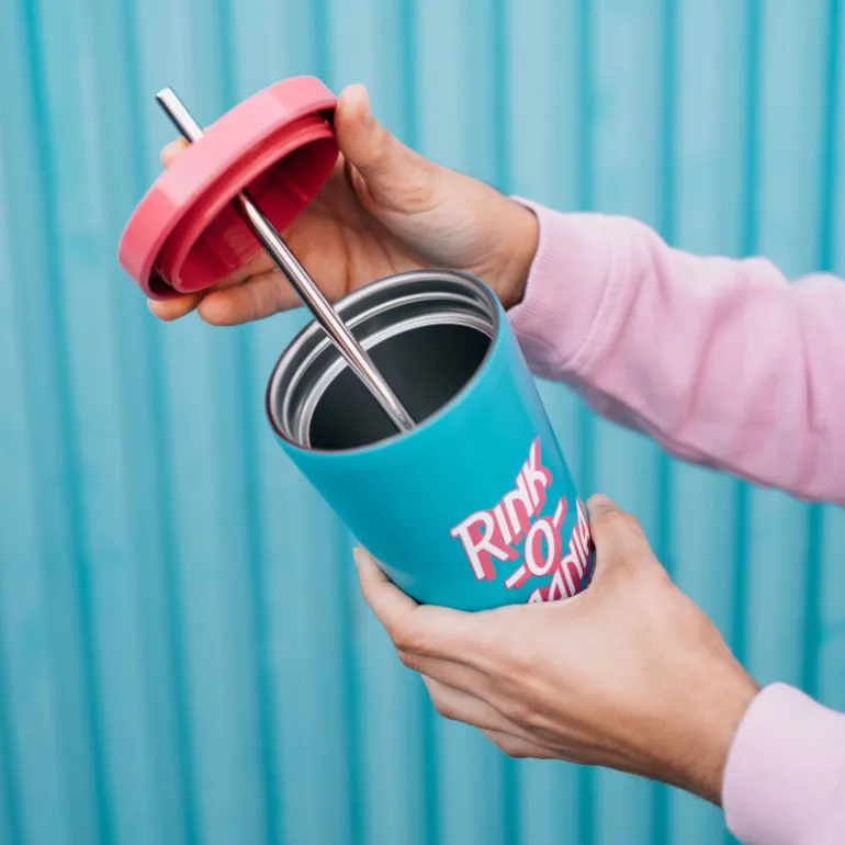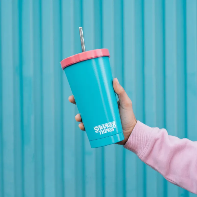 Este vaso con pajita de la marca Rink-O-Mania se destaca por su diseño inspirado en la famosa serie de televisión Stranger Things. Con un estampado retro y llamativo, este vaso es perfecto para disfrutar de tus bebidas favoritas mientras demuestras tu pasión por la serie.