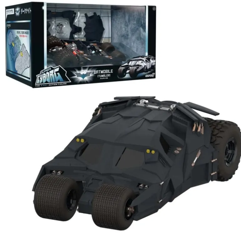El Tumbler, conocido por su aspecto robusto y futurista, cuenta con paneles extraíbles y una estructura meticulosamente detallada que refleja fielmente su contraparte del cine. Fabricado por Super7 bajo licencia oficial de DC Comics, es un artículo imprescindible para los fans de Batman y coleccionistas de juguetes temáticos.