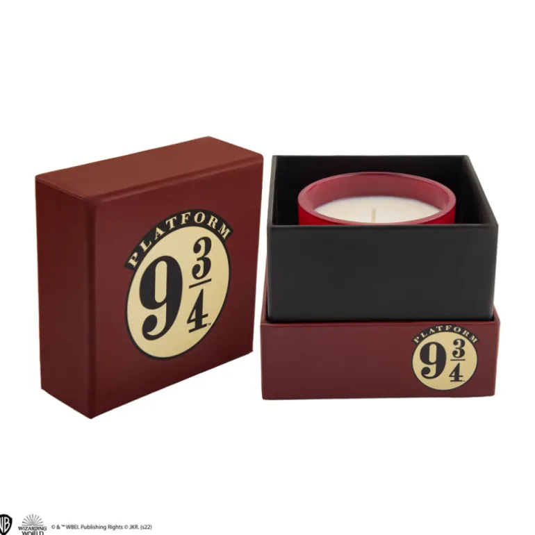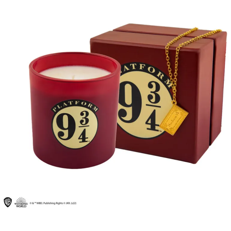 Es una vela con diseño inspirado en la Plataforma 9 3/4 y cada vela tiene su propio perfume además de un collar en su interior (en la cera). Es una vela con cera 100% natural (aceite de coco y cera de abeja).