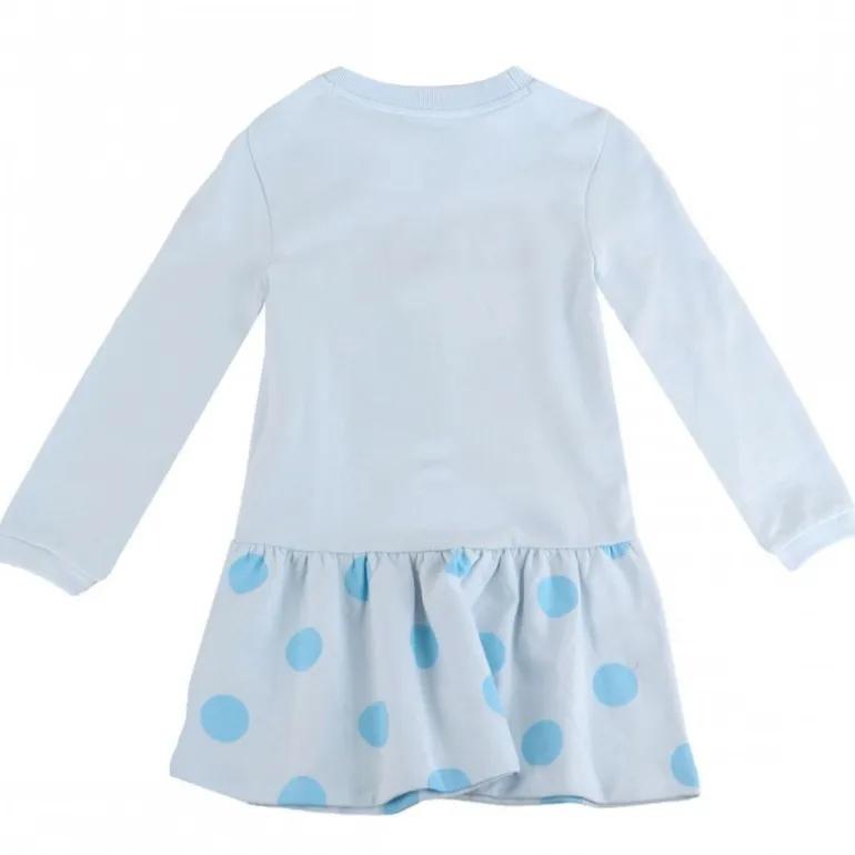 Este encantador vestido French Terry inspirado en Bluey es perfecto para las pequeñas fanáticas de este adorable personaje. Confeccionado en suave 100% algodón, garantiza comodidad y transpirabilidad para el día a día de las niñas. Su diseño presenta mangas largas y un lindo estampado frontal de Bluey acompañado de corazones y la frase «Let’s Do This», aportando un toque divertido y colorido. La falda está decorada con grandes lunares azules que añaden dinamismo al conjunto. Disponible en tallas para niñas de 3 a 6 años, es ideal tanto para el juego como para ocasiones especiales.