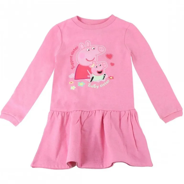 Este encantador vestido de Peppa Pig está diseñado para las pequeñas fanáticas del popular personaje de dibujos animados. Hecho de una suave mezcla de 60% algodón y 40% poliéster, ofrece comodidad y calidez para el día a día. Su color rosa vibrante y el divertido estampado de Peppa Pig y su hermanita serán el centro de atención en cualquier ocasión.
